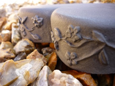 Grey stone effect finish with a lovely floral design feature around the edge of the heart.